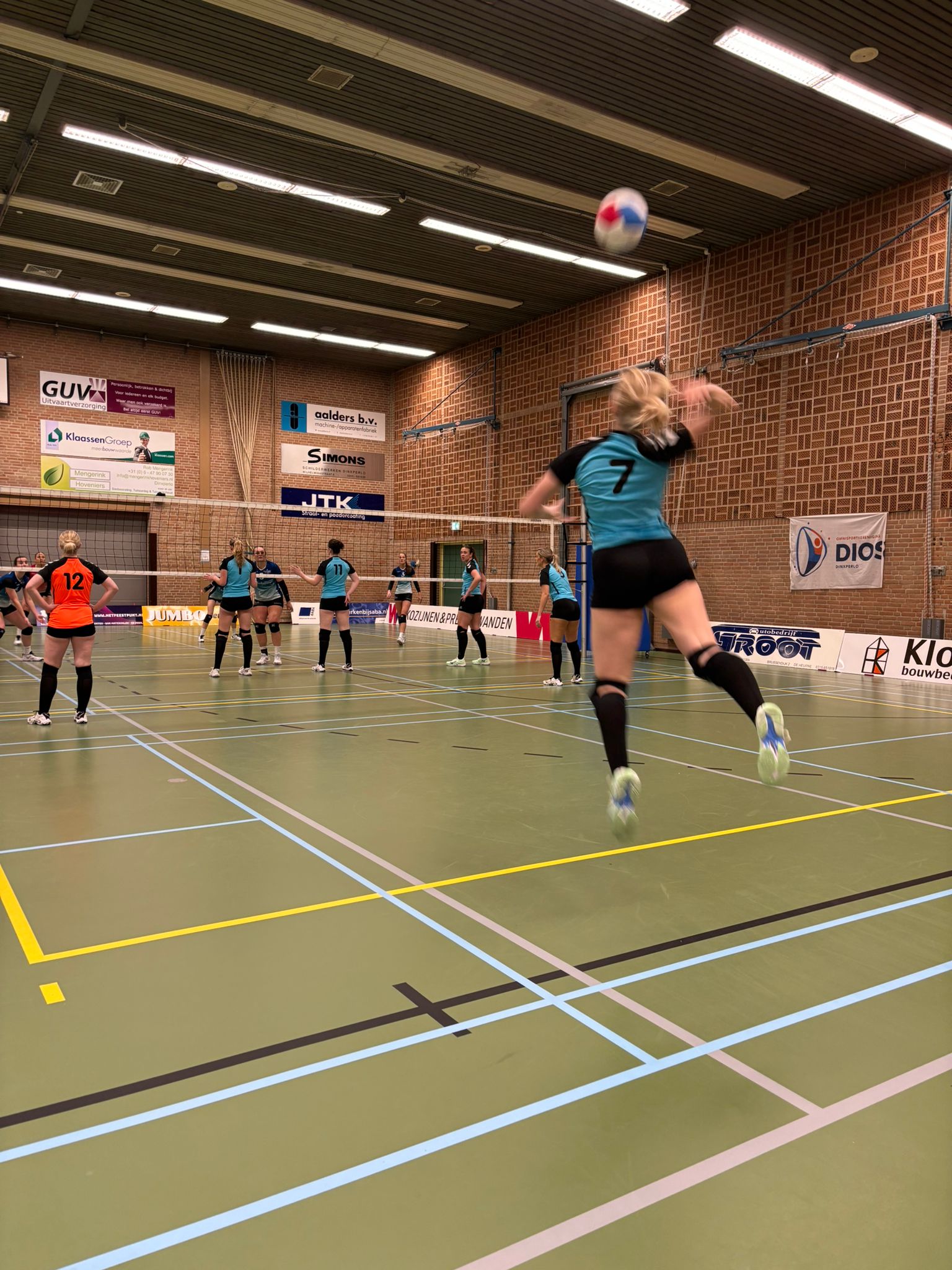 De dames van DIOS keken vol spanning uit naar de wedstrijd tegen concurrent Vollverijs. Beide teams draaien in de top van de regiodivisie mee en met de blakende vorm van de afgelopen weken waren de verwachtingen hooggespannen. Het bleek echter al snel dat DIOS geen schim was van het team dat in de afgelopen wedstrijden zo overtuigend speelde. Van servicedruk van de kant van DIOS was nauwelijks sprake en hierdoor kon Vollverijs zich een lastige tegenstander tonen. Ondanks dat was DIOS in de eerste twee sets toch de sterkste. In de eerste set ging het lang gelijk op, maar wist DIOS uiteindelijk toch met 25-23 te winnen. In de tweede set nam Vollverijs het initiatief en bij 12-19 leek de set naar de Terborgsen te gaan. DIOS toonde echter veerkracht en kwam terug in de set en won ook deze set met 25-23. Hierna was het echter Vollverijs dat de wedstrijd deed kantelen. Maar sterk aanvalspel en een sterke spelverdeling namen de routiniers het team op sleeptouw en werden de derde en vierde set gewonnen met respectievelijk 21-25 en 24-26.