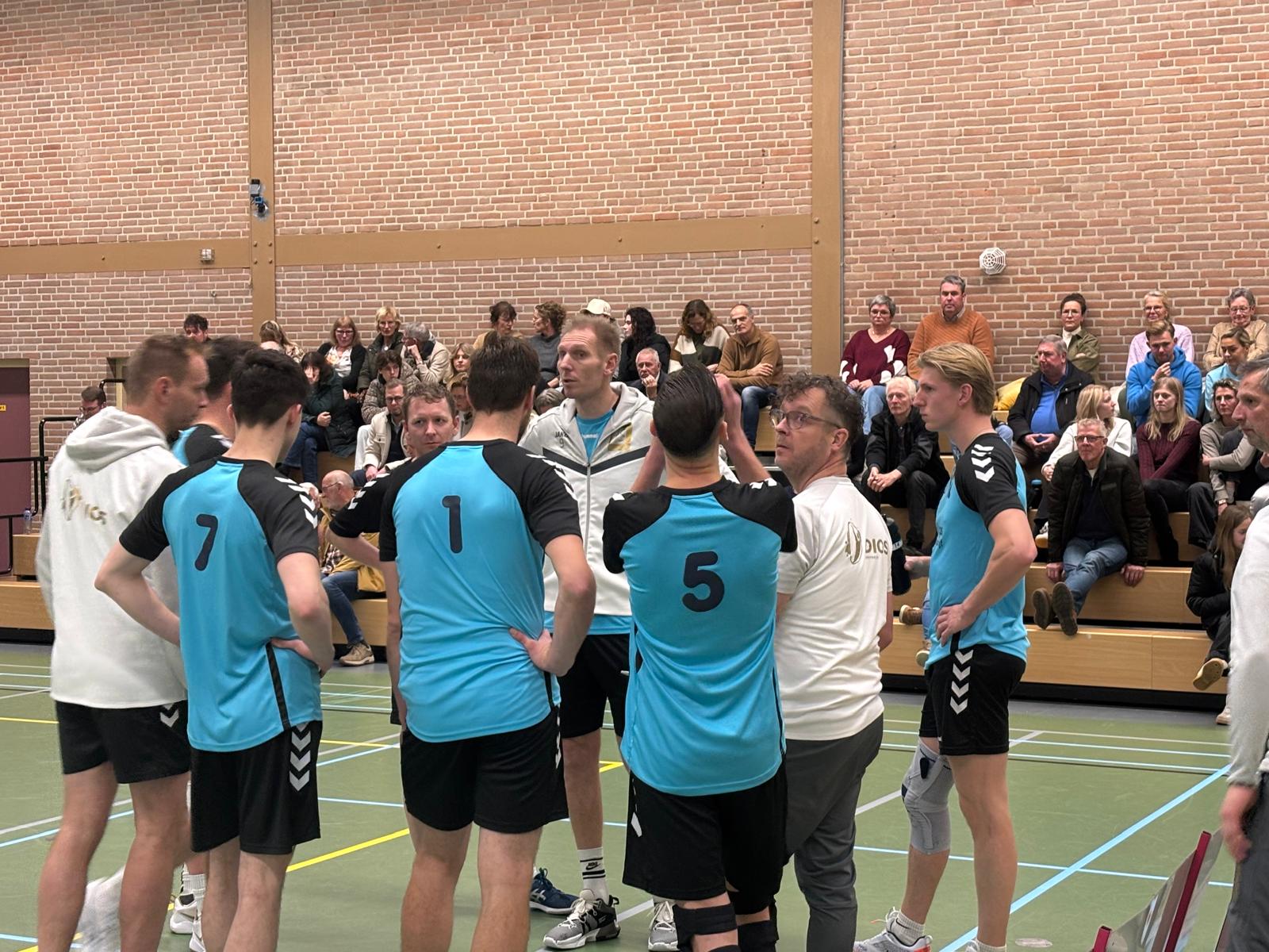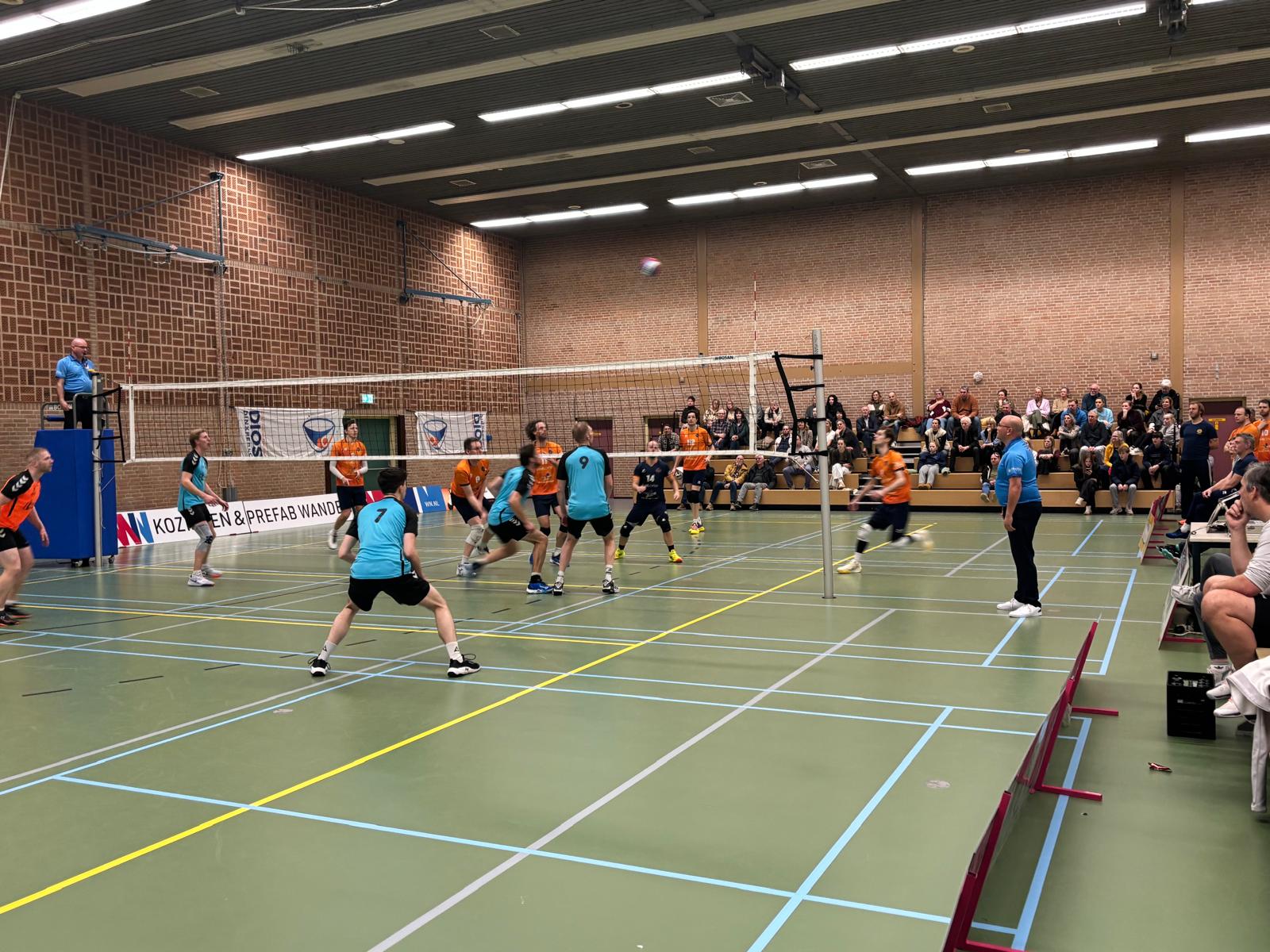 Vervolgens was het de beurt aan de heren van DIOS om te spelen tegen Taurus 2 uit Houten. Een spannende eerste set was de opmaat voor een leuke en sportieve wedstrijd. In die eerste set was het stuivertje wisselen, maar ging de winst uiteindelijk naar Taurus met 24-26. In de tweede set kon DIOS het niet bijbenen en wist Taurus met name vanwege hoge aanvallen op buiten en met gebruikmaking van lange en snelle middenspelers de set met 16-25 naar zich toe te trekken. De derde set gaf een heel ander beeld. DIOS leek de code van Taurus gekraakt te hebben en liep simpel weg naar een 25-15 setwinst. Taurus wist zich echter op tijd te herstellen en won de vierde set eenvoudig met 14-25. Daardoor ging de 1-3 winst mee naar Houten en vinden we DIOS terug op een zevende plats op de ranglijst. Volgende week is er een uitwedstrijd in Bilthoven tegen Irene, dat op de negende en voorlaatste plaats staat.